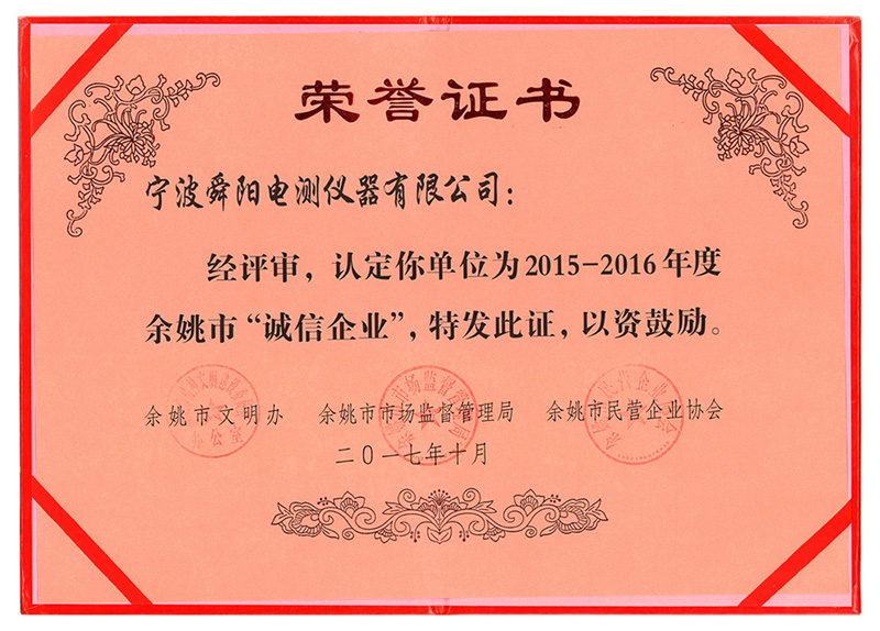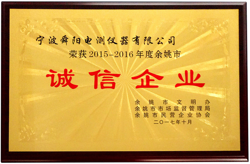 2017年10月,被余姚市文明辦、余姚市市場監(jiān)督管理局、余姚市民營企業(yè)協(xié)會聯(lián)合評定為2015-2016年度余姚市“誠信企業(yè)”