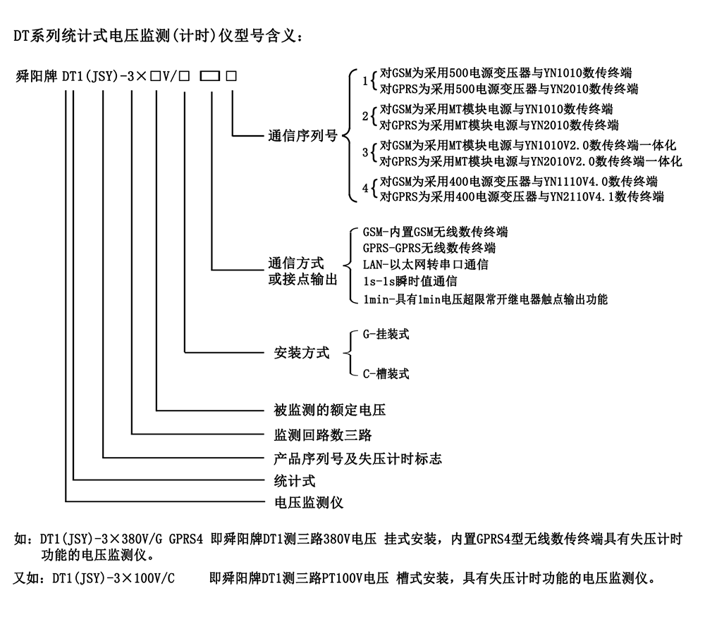 舜陽牌DT系列統(tǒng)計(jì)式電壓監(jiān)測(cè)計(jì)時(shí)儀型號(hào)含義