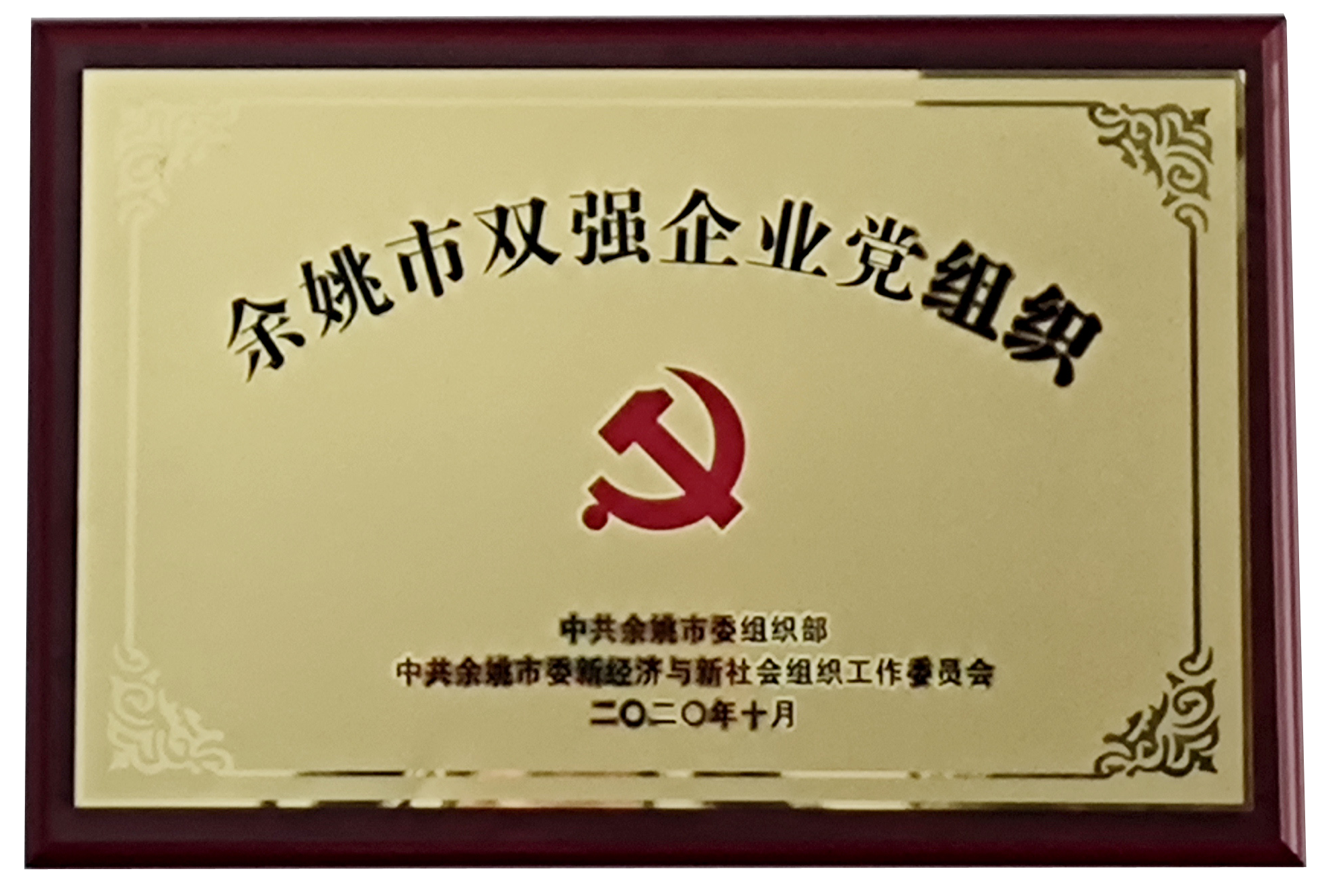 2020年10月被余姚市委組織部、中共余姚市委新經(jīng)濟(jì)與新社會(huì)組織工作委員會(huì)評(píng)為余姚市兩新組織“雙強(qiáng)”黨組織